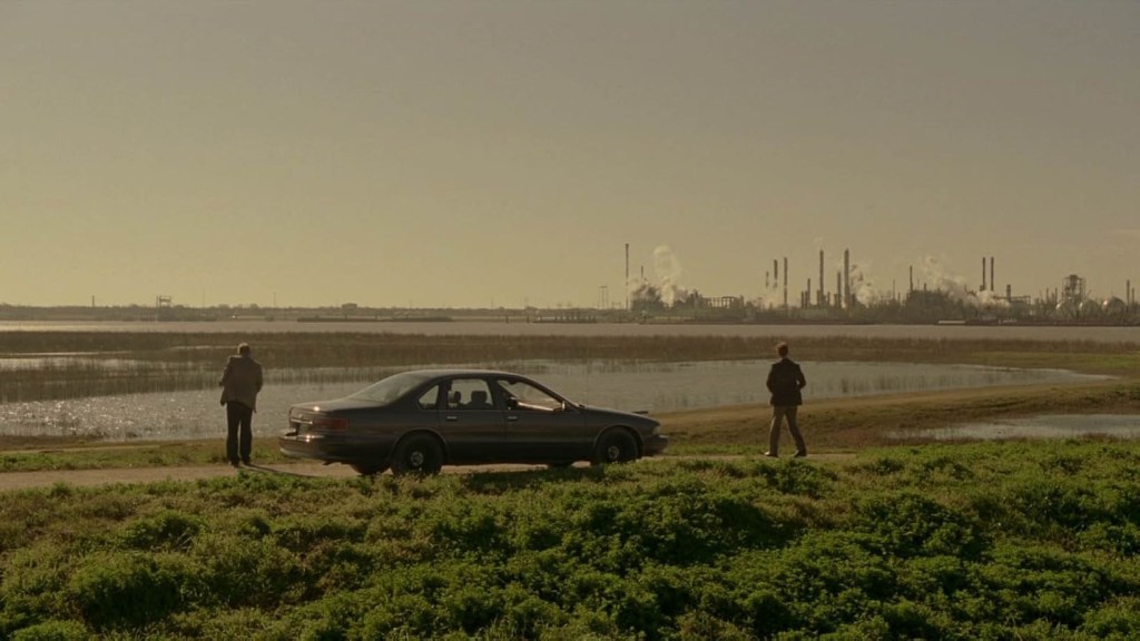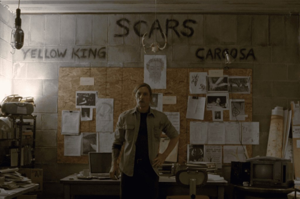 Images of Southern state ecological horror, sexual depravity, philosophical pessimism, moral decay, socioeconomic class determinism, and madness in the TV show play into a mythos where associations with Carcosa and The King in Yellow are linked with the degradation and ruin of the person and their surroundings.